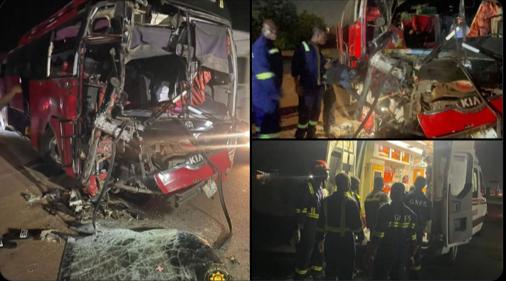 10 killed in VIP bus and diesel trailer crash on Accra-Kumasi highway…#GHOneNews #EIBNetwork #NewsAlert #GHOneTV pic.twitter.com/834Q3OHzGb