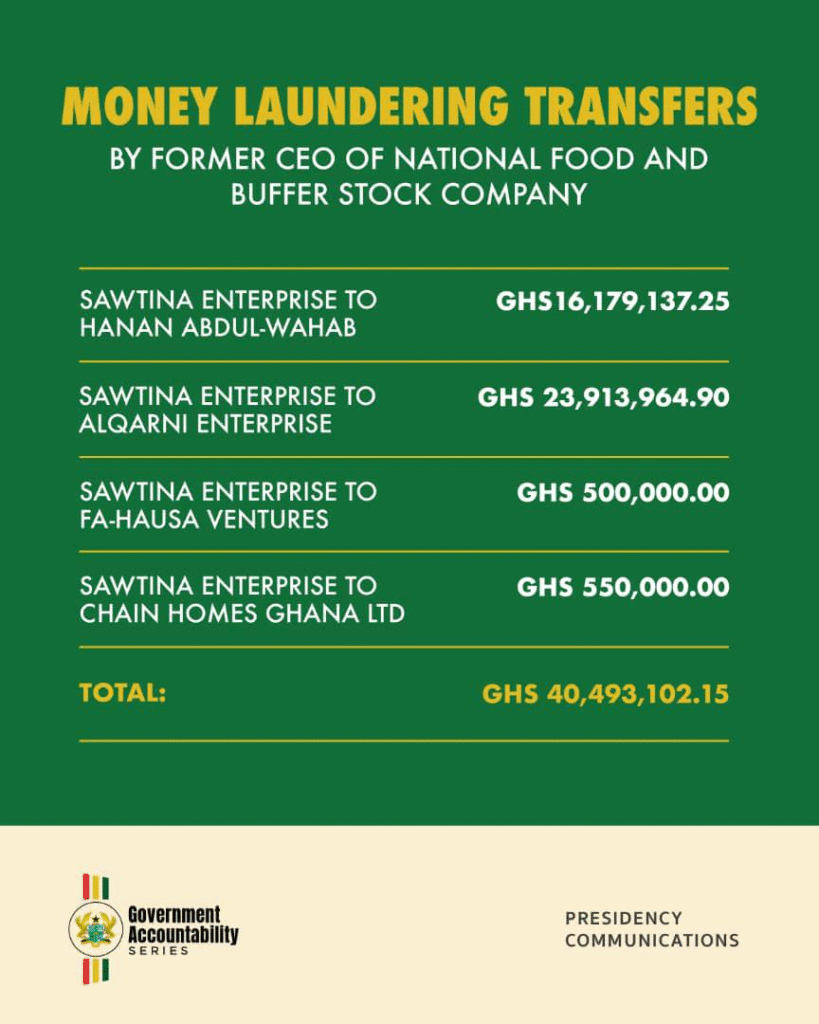 Dr Dominic Ayine, the Attorney General and Minister for Justice, has revealed that the former Chief Executive Officer of the National Food and Buffer Stock Company, Abdul-Wahab Hannan, laundered and transferred over GHS40million.
