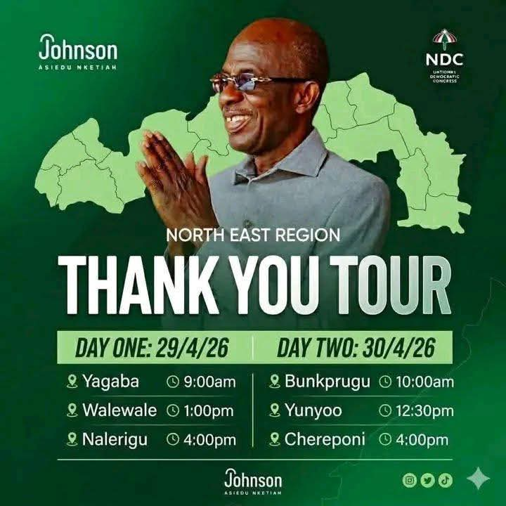 Johnson Asiedu Nketiah, the National Chairman of the National Democratic Congress (NDC), has suspended his scheduled “Thank You Tour” of the North East Region.