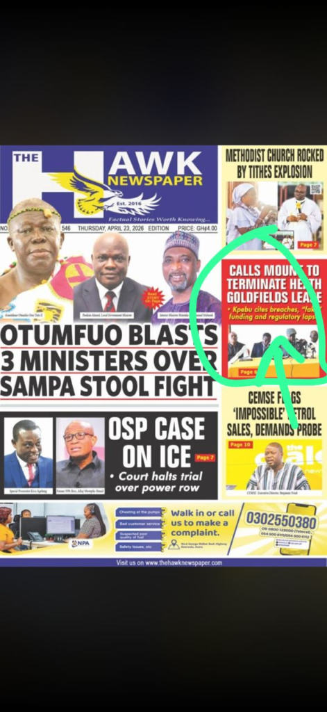 It must be noted that Goldfields was taken over recently. Heath Gold, owned by Kwabena Duffuor, is facing orchestrated protests demanding their licenses to be terminated, with a newspaper headline saying, “Calls mount to terminate Heath GoldFields lease”.