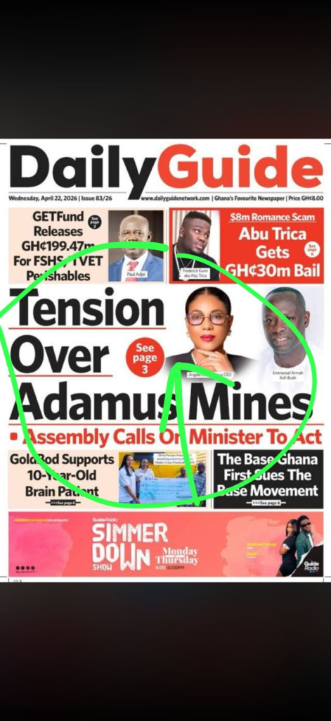 Adamus is also facing similar protests, with reports by the Daily Guide stating “Tension Over Adamus Mines”