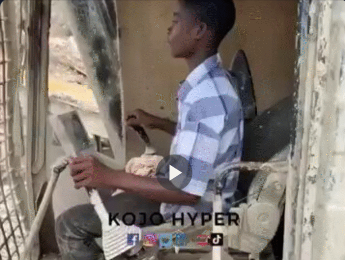 The narrator in the video stated, “This is the kid who earns more money than teachers, he did not attend school, he dropped out of school in class six. He is just trying the machine; that is his master standing there, Mussa, you have taught the child a better work. He is not a professor, but every week he earns GH¢6,000”.