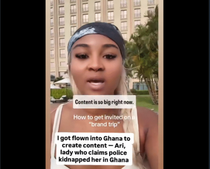 🚨: Another video of Ari relaxing at the Kempinski, a 5-star hotel in Ghana, has emerged, in which she reveals she was flown to Ghana to create content—raising new questions after her earlier claims of being kidnapped and extorted by alleged Ghana Police officers. https://t.co/YDpkKD9tZd pic.twitter.com/HbY8bvR0V5
