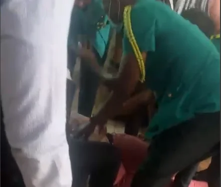 In the viral video shared on X, immigration officials were seen dragging a woman on the floor out of a hotel in Ogbojo, Accra.