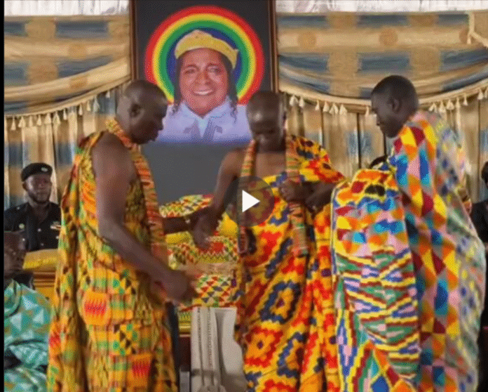 In a viral video, Lawyer Festus Owusu Badu was clothed in a beautiful kente as he was sworn in as the chairman.