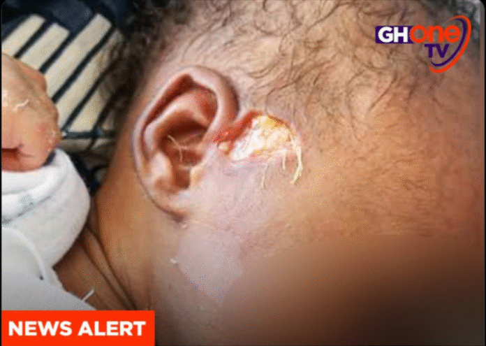 In a post shared on X by GHOne TV, on Monday, November 17, 2025, read, “A mother in the Oti Region is seeking justice after her newborn allegedly suffered a deep cut near the ear during a cesarean at Jasikan District Hospital.