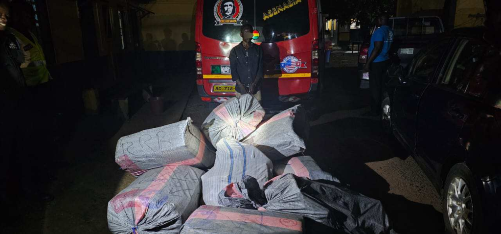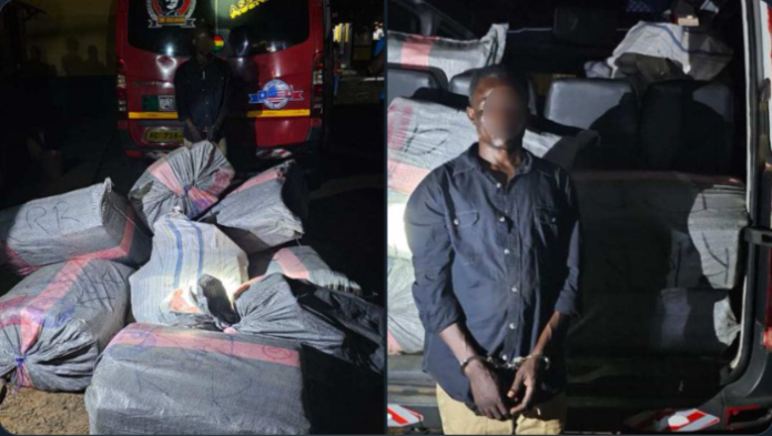 Officers of the Bekwai District Police Command arrested the 50-year-old Trotro driver after a search conducted on a Mercedes-Benz Sprinter bus revealed nine nylon sacks containing 714 slabs.
