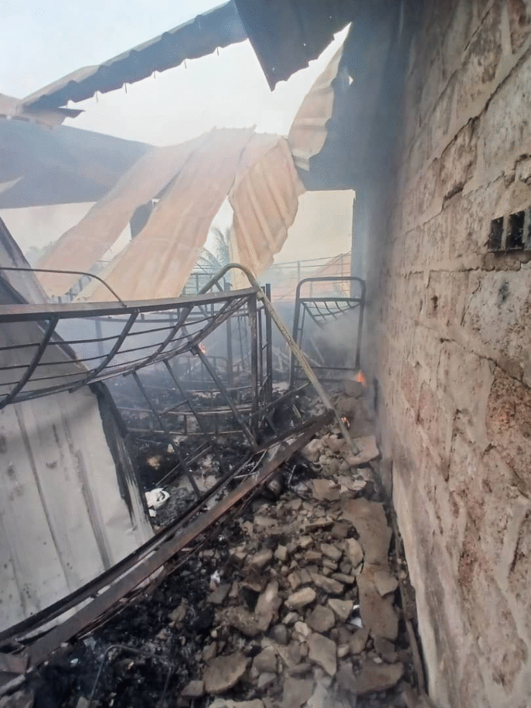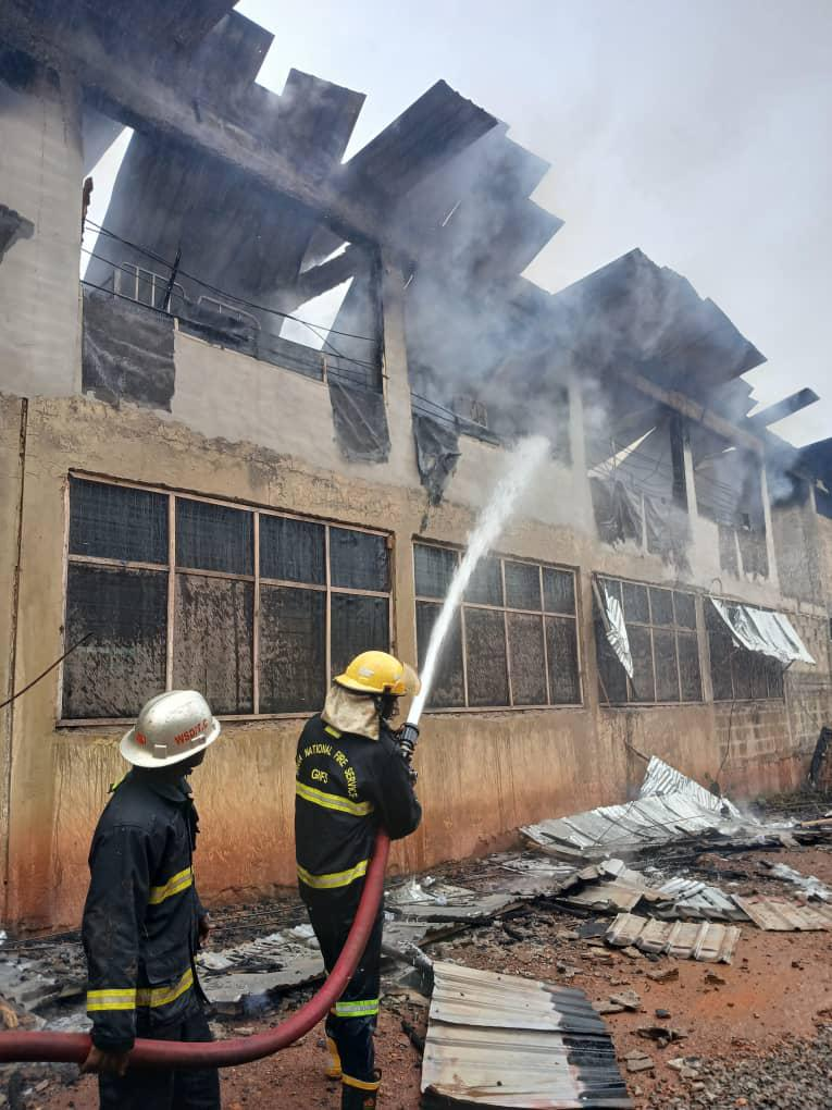 Regional Fire Commander ACFO Peter Tettey at the scene explained, “We can’t enter because the building may collapse soon. They were on break when the fire started. Highly combustible items and the building’s own flammable materials caused the fire to spread quickly”.