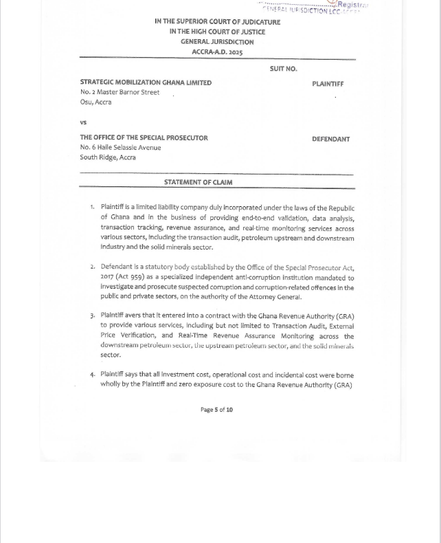 Strategic Mobilisation Ghana Limited (SML) has dragged the Office of the Special Prosecutor (OSP) to the Accra High Court.