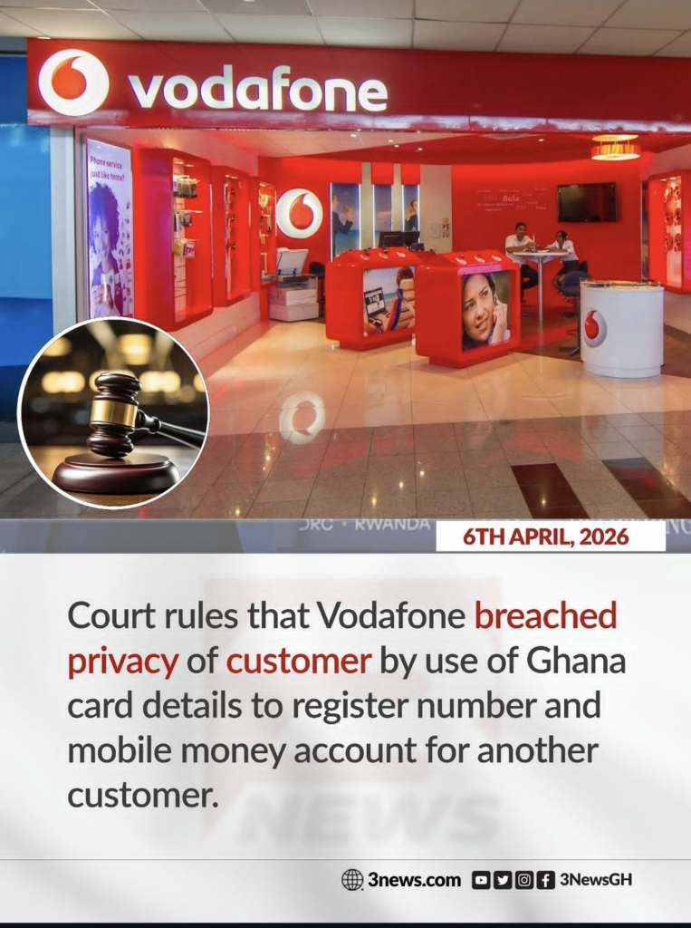 The Supreme Court has ruled that Vodafone Ghana Limited has breached the privacy of its customers by using Ghana card details to register a number and mobile money account for another customer.