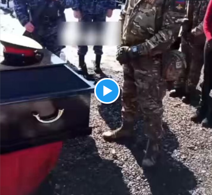 In the viral video, the deceased was laid in a coffin at what appeared to be a cemetery in Russia.