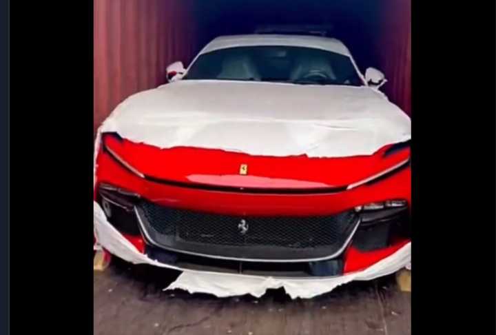 A viral video surfaced on social media showing the $450,000 Ferrari Purosangue being cleared at Tema Port.