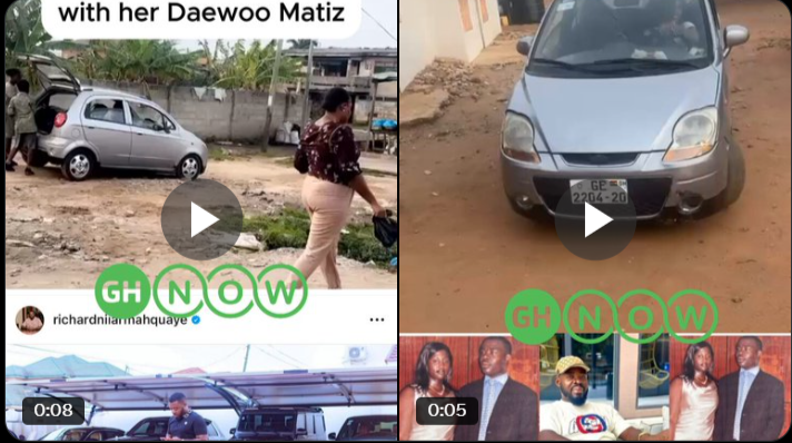 A video has surface on social media of the ex-wife of Ghanaian businessman Richard Nii Armah-Quaye, commonly known as RNAQ, Mrs Joana Quaye picking up their kids in an old Daewoo Matiz amids divorce alimony battle.