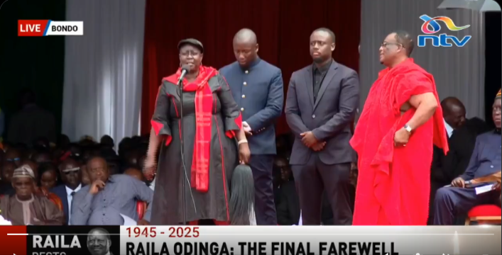 Speaking at the funeral service of Raila Odinga in Bondo, Ruth Odinga stated, “Many of you do not know I have a right hand, my right hand is here today”.